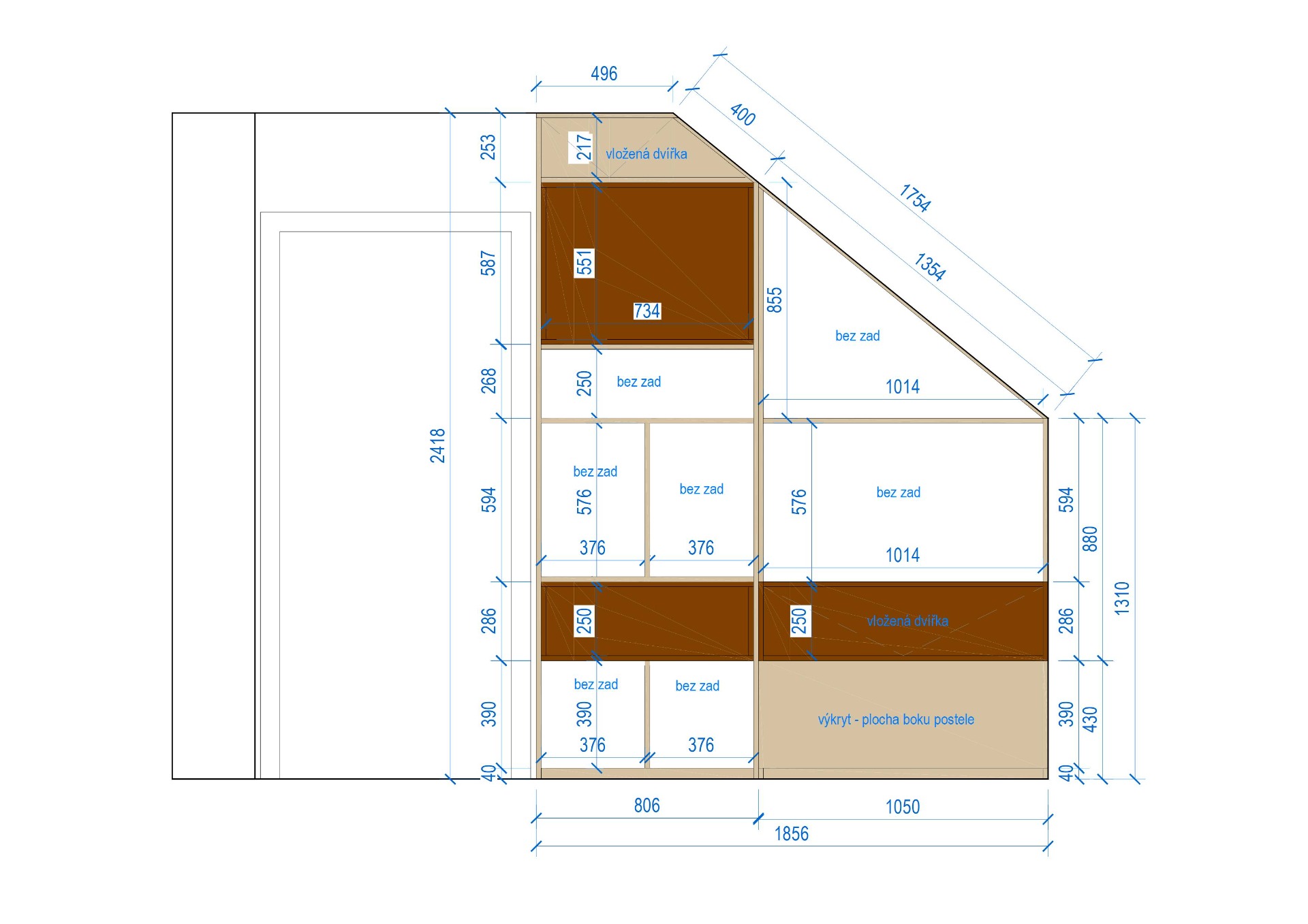✓ VÝKRESY PRO TRUHLÁŘE U NÁBYTKU NA MÍRU